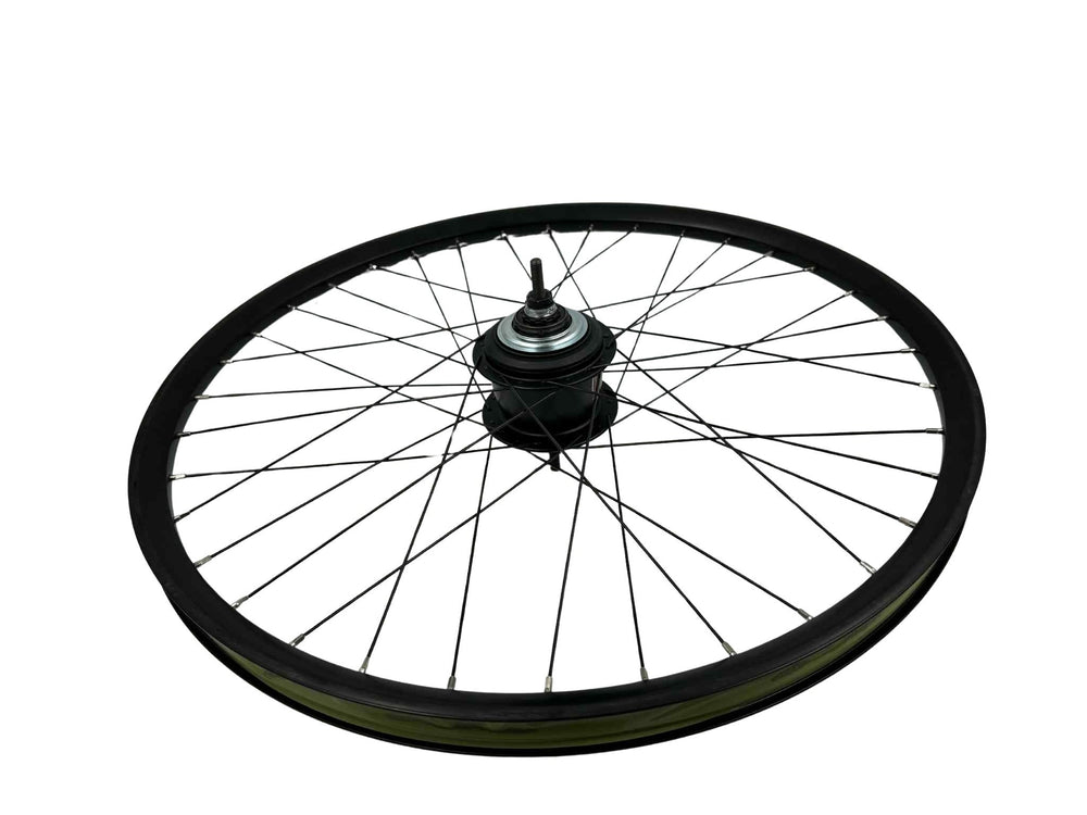 The Shimano Nexus hub provides seamless gear shifting and consistent performance, making every ride smoother and more efficient. With its durable black spokes and strong rim construction, this wheel is optimized for electric cargo bikes, ensuring stability even under heavy loads.